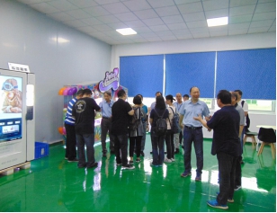 會后徐常董、吳常董及各運營總監(jiān)一起陪同各來訪領(lǐng)導(dǎo)到生產(chǎn)現(xiàn)場參觀考察;現(xiàn)場了解制造沖壓自動化機(jī)械手運用情況,及量測實驗室精密量測設(shè)備的使用情況;隨后,又參觀了販賣機(jī)、糖果機(jī)、咖啡機(jī)生產(chǎn)車間,從中整體了解了自動售賣系列產(chǎn)品的運行及后期維護(hù)情況,蔡會長及各企領(lǐng)導(dǎo)還現(xiàn)場體驗試用咖啡機(jī)及糖果機(jī)的效果。