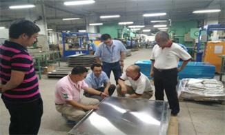 2017年9月20日下午,華為公司董總等4人一行蒞臨公司并在馬總監(jiān)、彭協(xié)理、陳協(xié)理、李經(jīng)理的陪同下到生產(chǎn)現(xiàn)場考察德電機柜產(chǎn)品生產(chǎn)狀況,公司馬總監(jiān)對公司相關(guān)情況進行了現(xiàn)場解說和匯報,并提出較多生產(chǎn)工藝加工難點進行共同討論,解決了諸多工藝上的問題,例如減少焊接和打磨、免焊接加工工藝、板材厚度優(yōu)化等等。